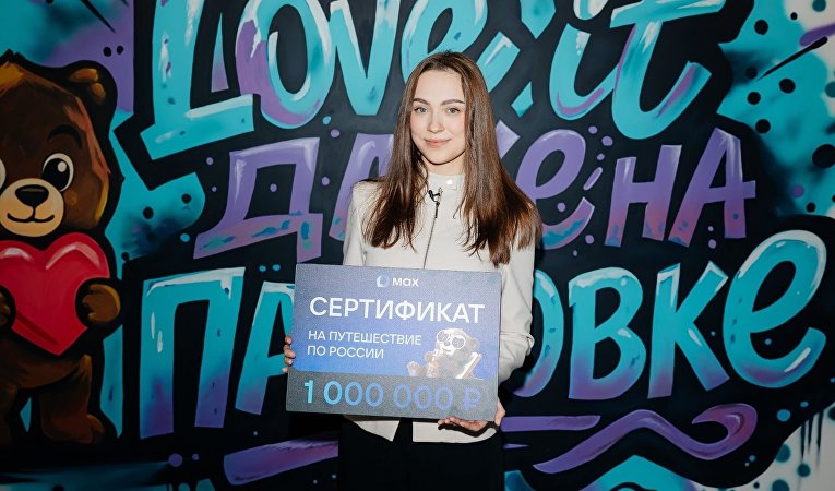 Торжественное награждение победительницы, 23-летней Наталии Гладковой из Тулы, студентки РАНХиГС, прошло в офисе MAX в Москве. Девушке подарили сертификат на путешествие по России номиналом в один миллион рублей, а также чемодан с набором необходимых вещей для поездки и мерч. Как уточнили в пресс-службе, у Гладковой была возможность самостоятельно выбрать город и культурную программу.