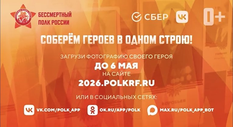 Чтобы принять участие, необходимо подать заявку на сайте 2026.polkrf.ru, в мини-приложениях ВКонтакте, Одноклассники или мессенджер Макс. В личном кабинете разместить фотографию и информацию о ветеране Великой Отечественной войны, труженике тыла, а также о тех, кто сражался за Родину. При необходимости можно воспользоваться функцией улучшения фотографии.