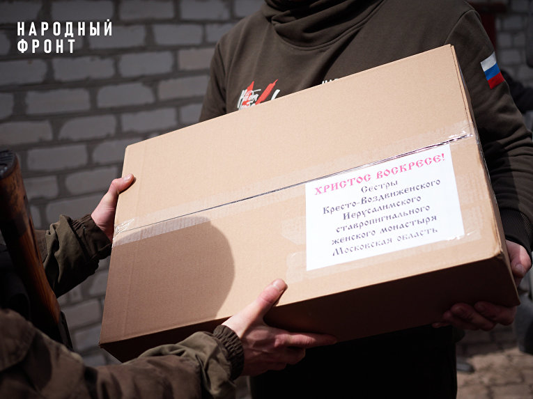 Так, 5 тысяч освященных куличей представители Народного фронта привезли военнослужащим Первого Донецкого армейского корпуса. Их испекли сёстры Кресто-Воздвиженского Иерусалимского ставропигиального женского монастыря в Подмосковье.