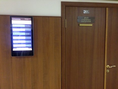 11:50 Вот вам картинка из суда. Из информации на этом электронном табло следует, что предыдущее заседание закончилось. Мы (вернее, Евтушенков) следующие.