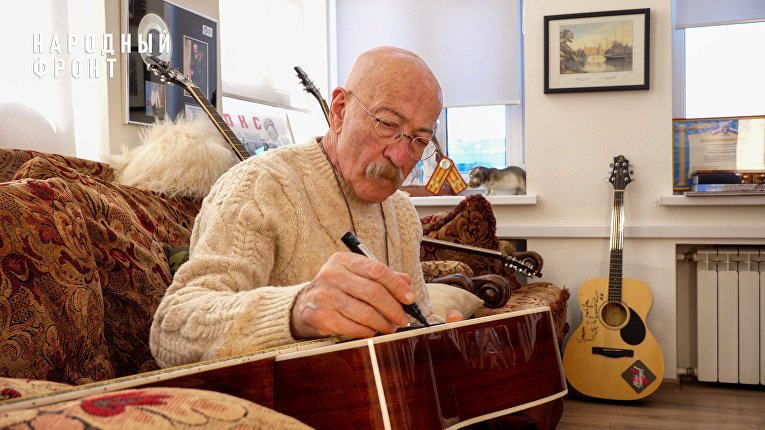 МОСКВА, 18 фев — РАПСИ. Известные артисты и певцы — участники Команды Путина в преддверии Дня защитника Отечества подписали гитары для бойцов на передовой.